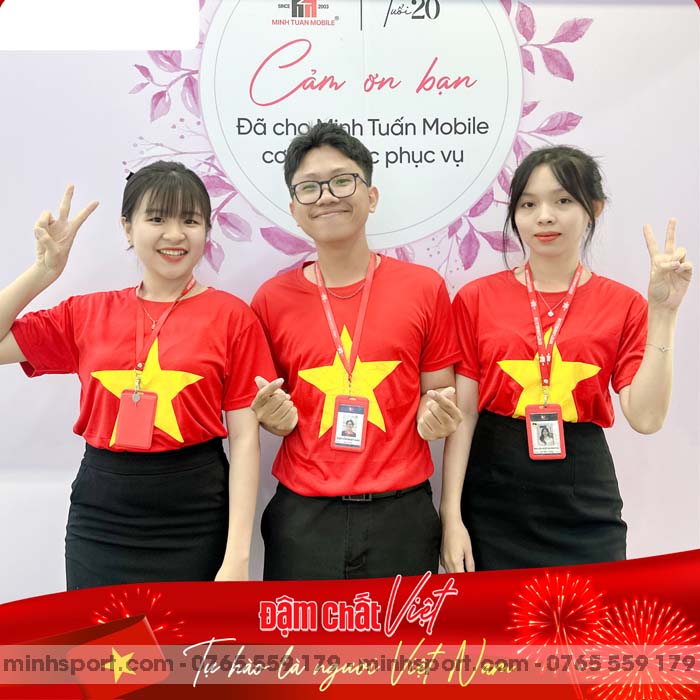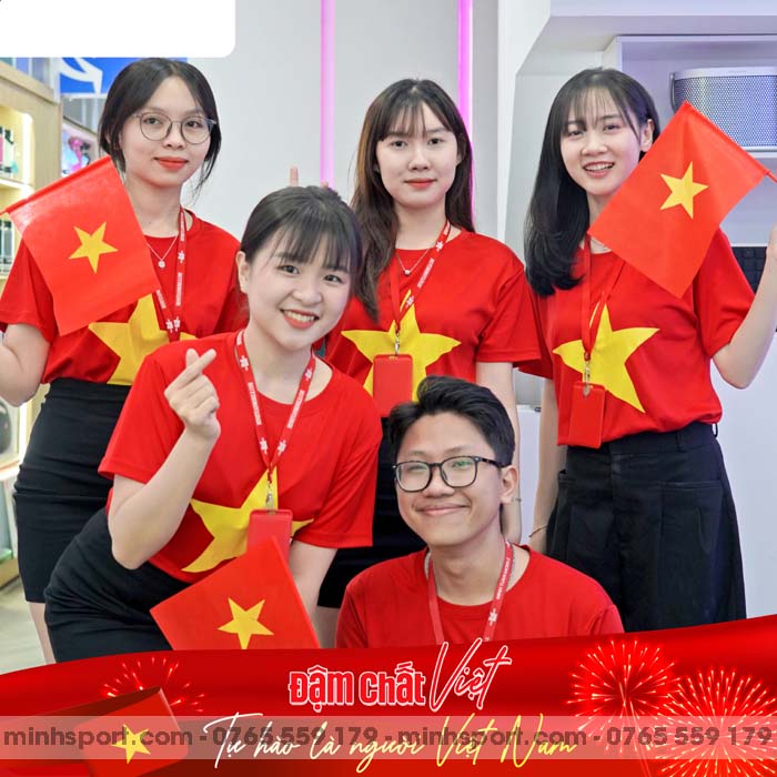Tại Đồng phục Hưng Phát, chúng tôi cam kết cung cấp áo thun cờ đỏ sao vàng chất lượng cao, in sắc nét, màu bền đẹp theo thời gian. Đặc biệt, nhận thiết kế theo yêu cầu riêng, in logo hoặc thông điệp để tạo dấu ấn cá nhân cho từng chương trình.