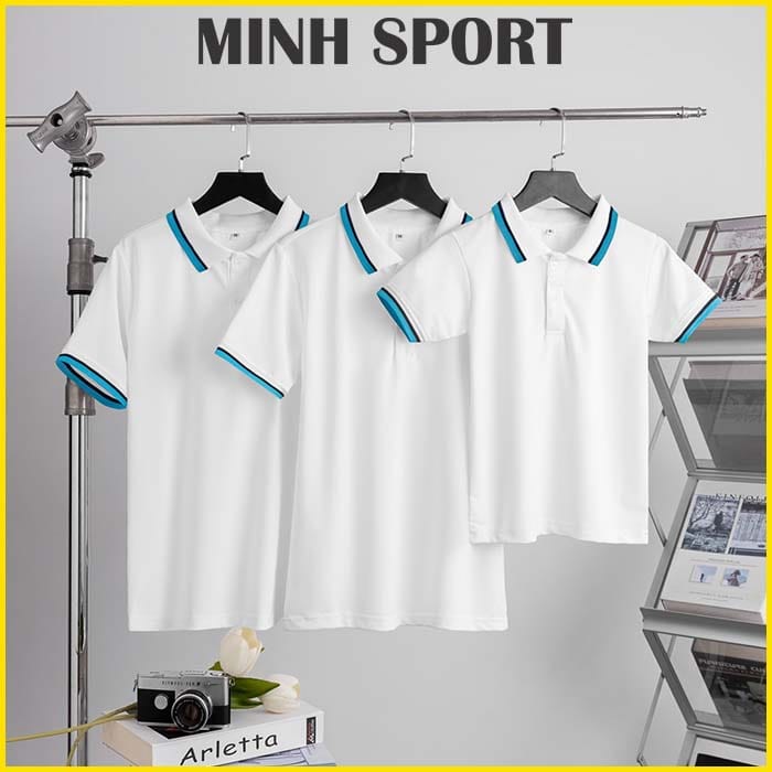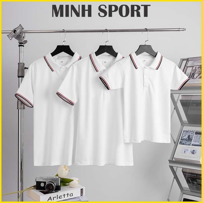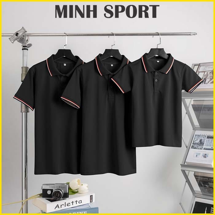 - Kiểu may: áo thun đồng phục polo có cổ, phối bo viền sọc để tạo điểm nhấn độc đáo