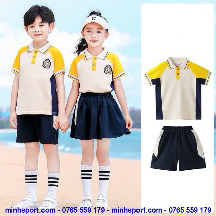 Mẫu Đồng Phục Mầm Non Polo Màu Kem phối Vàng Đẹp MN007